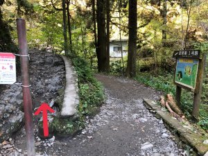 あっ、下の画像の分岐は間違えやすいポイント!「6号路」で山頂を目指す方は左側の道を登って下さいね、因みに右の道を行くと琵琶滝・1号路