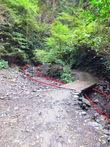 下の画像の場所は以前小川が流れていたんですよ(赤い線の中)、ここへ来ると小川で手を洗ったりしてたもんです…