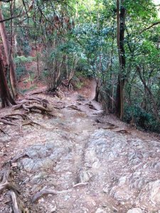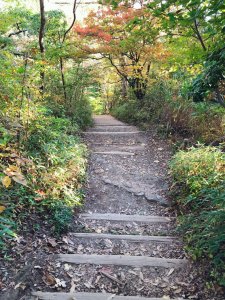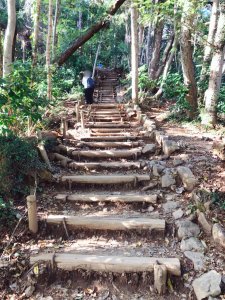 山頂から「稲荷山コース」を選択して出発すると先ず現れるのがこの急こう配の階段の洗礼…