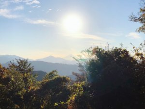 ぱっと見では分かりにくいですけど太陽の下、連なっている山々の一番奥に薄っすらとその姿を現しているのが皆が大好きな富士山っていう日本一の山です(笑)