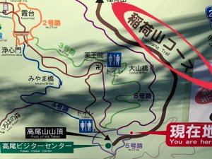 高尾山には「1号路」から「6号路」までの(組み合わせた)ルートと、山頂まで直通の「稲荷山コース」があります、